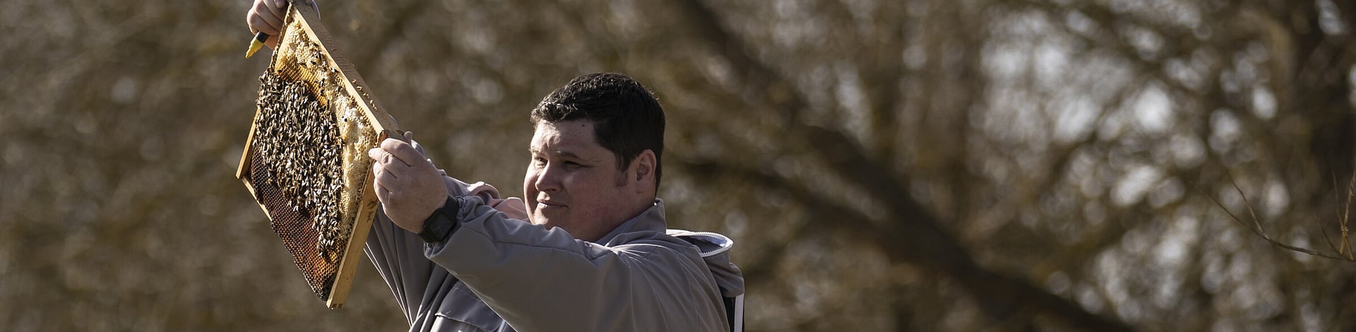 George started beekeeping in 2007 when his role delivering horticultural and conservation in a special educational school led him to discover more about the environmental importance and therapeutically benefits of working with bees.